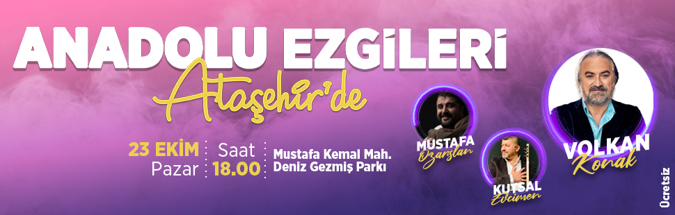 Ardından ise Türk halk müziğinin sevilen sesi Mustafa Özarslan türküleriyle Anadolu’nun ezgilerini Ataşehir’de estirecek.