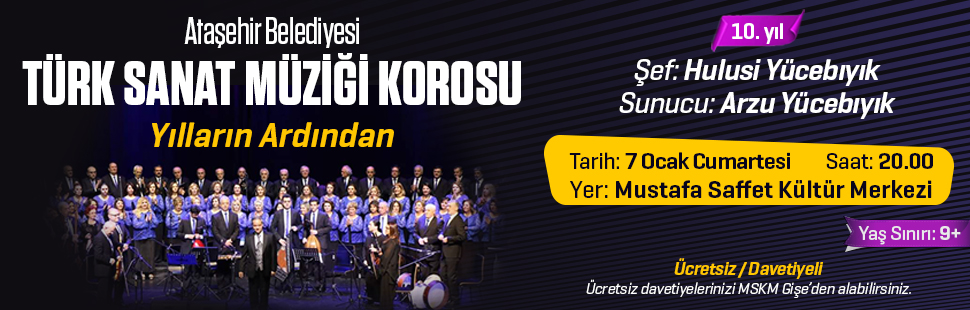 Şef Hulusi Yücebıyık yönetimindeki Ataşehir Belediyesi Türk Sanat Müziği Korosu, Ataşehirli sanatseverlerle kuruluşunun 10. yıla özel düzenleyecekleri konserde buluşacak.