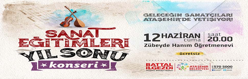 Ataşehir Belediyesi Kültür ve Sosyal İşler Müdürlüğü tarafından hazırlanan “Sanat Eğitimini Mahallenize Getiriyoruz” projesinde 2014-2015 eğitim döneminde öğrenim gören öğrenciler yılsonu performanslarını Ataşehir Zübeyde Hanım Öğretmenevi’nde saat 20.00’da sergileyecekler.