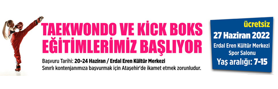 27 Haziran – 8 Eylül tarihleri arasında Erdal Eren Kültür Merkezi Spor Salonu’nda ücretsiz olarak gerçekleşecek Taekwondo ve Kick Boks eğitimlerine, Ataşehir’de ikamet eden 7- 15 yaş arası çocuklar katılabilecek.