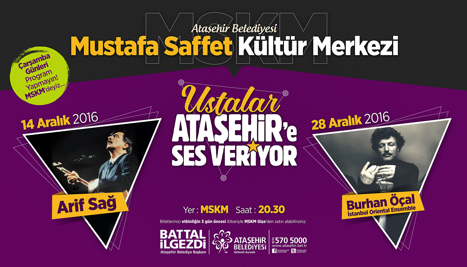 >>> Önemli Duyuru: 14 Ocak Çarşamba günü Mustafa Saffet Kültür Merkezi'nde düzenlenecek olan Arif Sağ konseri, geçtiğimiz Cumartesi günü yaşanan hain saldırı ve Sayın Arif Sağ’ın rahatsızlığı nedeniyle ileri bir tarihe ertelenmiştir. <<<