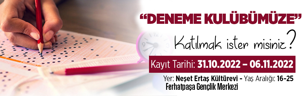 Ataşehir Belediyesi Eğitim Merkezleri’nde yepyeni bir eğitim hizmeti başlıyor. “Deneme Kulübü” ismiyle hizmet verecek programda öğrenciler, Temel Yeterlilik Testi (TYT) - Alan Yeterlilik Testi (AYT) sınavlarına hazırlanacak.