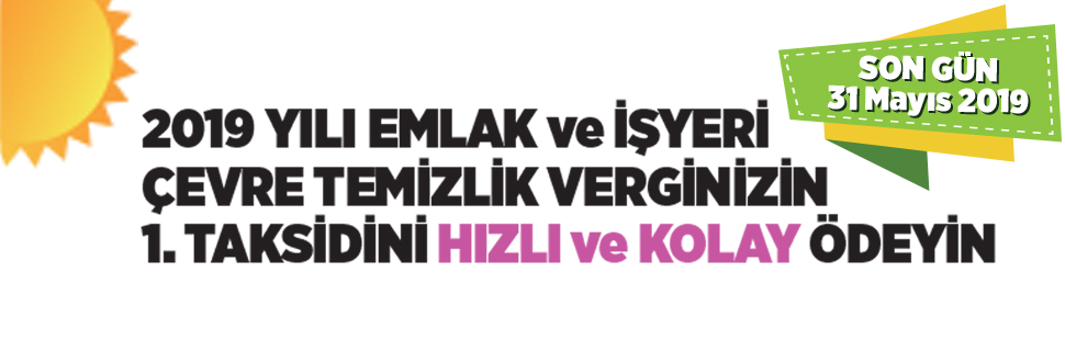“2019 yılı Emlak ve İşyeri Çevre Temizlik Vergilerinin 1. Taksidi” için son ödeme tarihi 31 Mayıs 2019’dur.