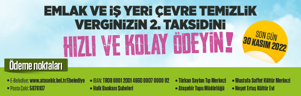 2022 yılı Emlak ve İş Yeri Çevre Temizlik Vergileri 2. taksit ödemeleri için son gün 30 Kasım Çarşamba.
