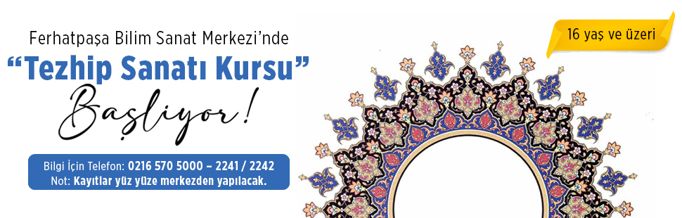 Bu kapsamda Ferhatpaşa Bilim Sanat Merkezi’nde “Tezhip Sanatı” kursu başlıyor. Dersler, 16 yaş ve üzeri yetişkinlere yönelik, akademik bir eğitim metoduyla işlenecek.