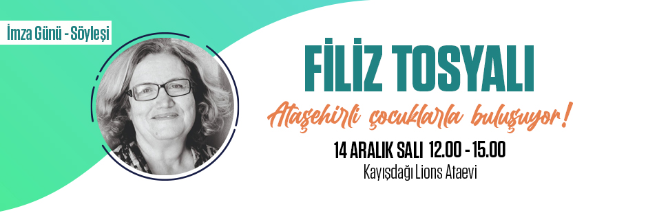 12.00-15.00 saatleri arasında yapılacak atölye sonrası Filiz Tosyalı sevilen kitaplarını çocuklar için imzalayacak.