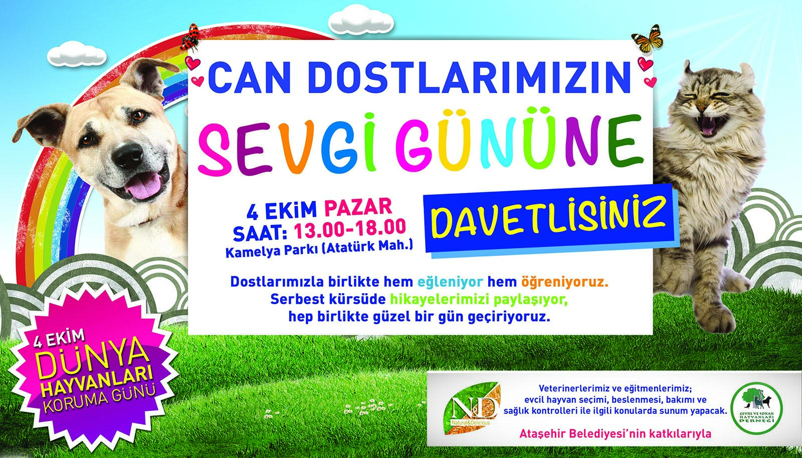 Ataşehir Belediyesi, Ataşehir Çevre ve Sokak Hayvanları Gönüllüleri Derneği ile Natural Delicious’un birlikte düzenleyeceği Can Dostlarımızın Sevgi Günü etkinliğine tüm halkımız davetlidir.