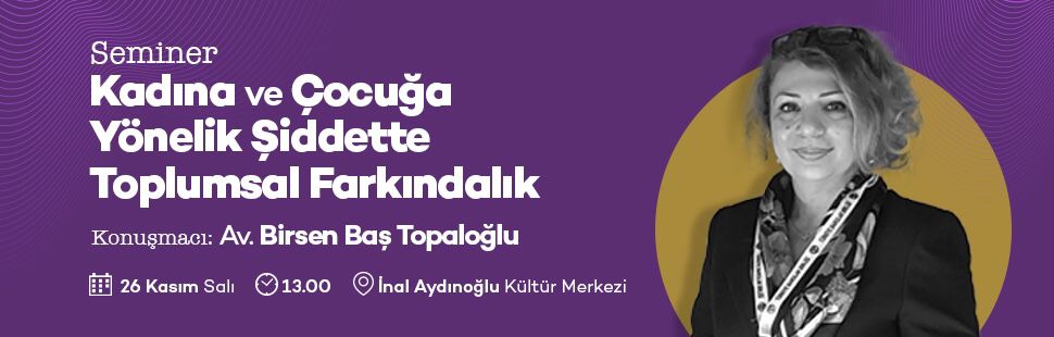Ataşehir Rotary Kulübü ile ortaklaşa düzenlenen ve toplumsal farkındalığı artırmayı amaçlayan önemli bir seminer, İnal Aydınoğlu Kültür Merkezi'nde gerçekleştirilecek. "Kadına ve Çocuğa Yönelik Şiddette Toplumsal Farkındalık" başlıklı seminere, hukuk alanında önemli bir isim olan Avukat Birsen Baş Topaloğlu konuşmacı olarak katılacak.