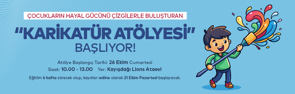 Çocukların hayal güçlerini çizgilerle buluşturan ve onları eğlenceli bir yolculuğa çıkaran Karikatür Atölyesi, 26 Ekim'den itibaren her Cumartesi, Kayışdağı Lions Ataevi'nde düzenlenecek.