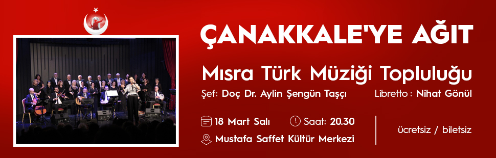 Mısra Türk Müzik Topluluğu tarafından 18 Mart Salı günü Mustafa Saffet Kültür Merkezi’nde “Çanakkale’ye Ağıt” konseri düzenlenecek.
