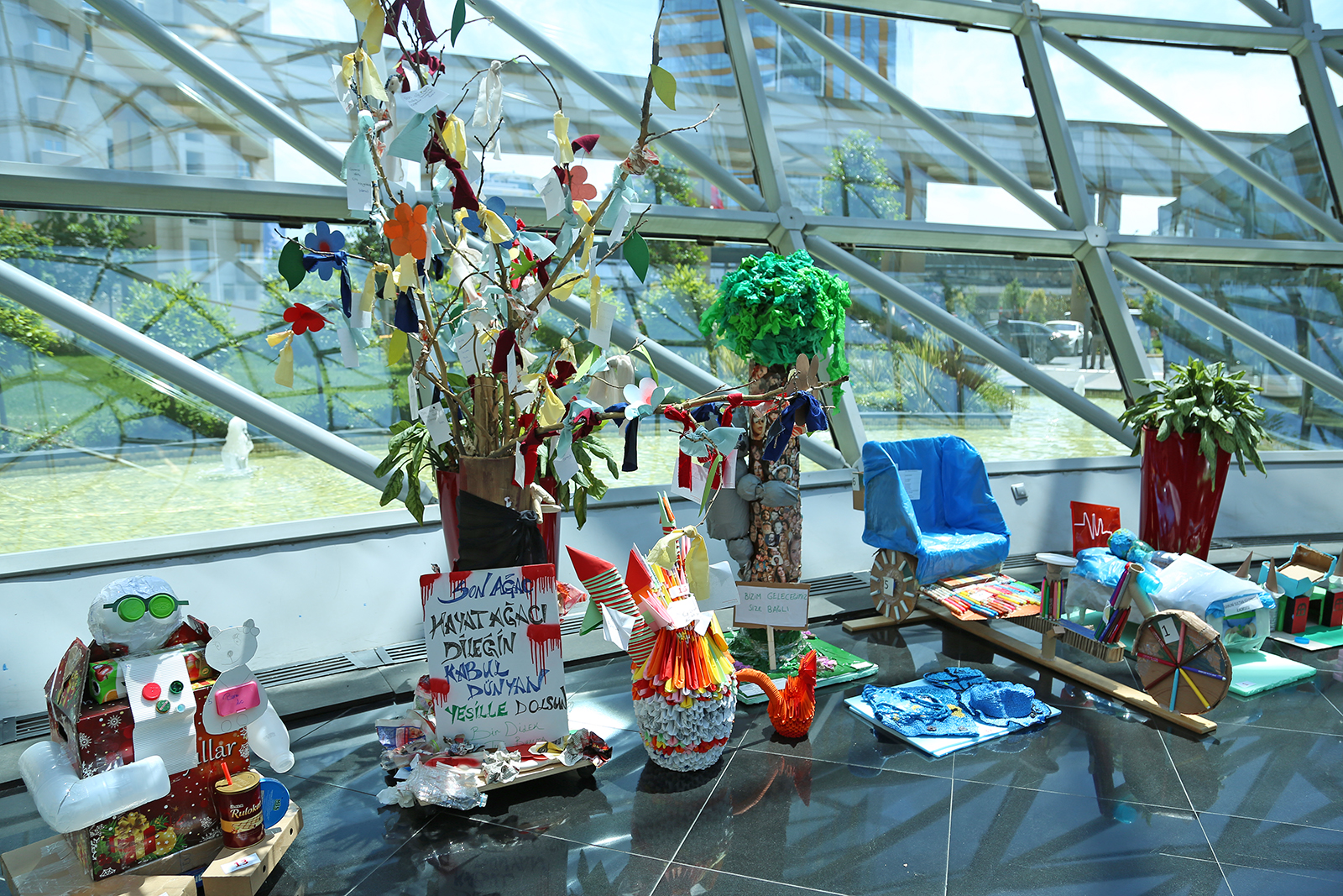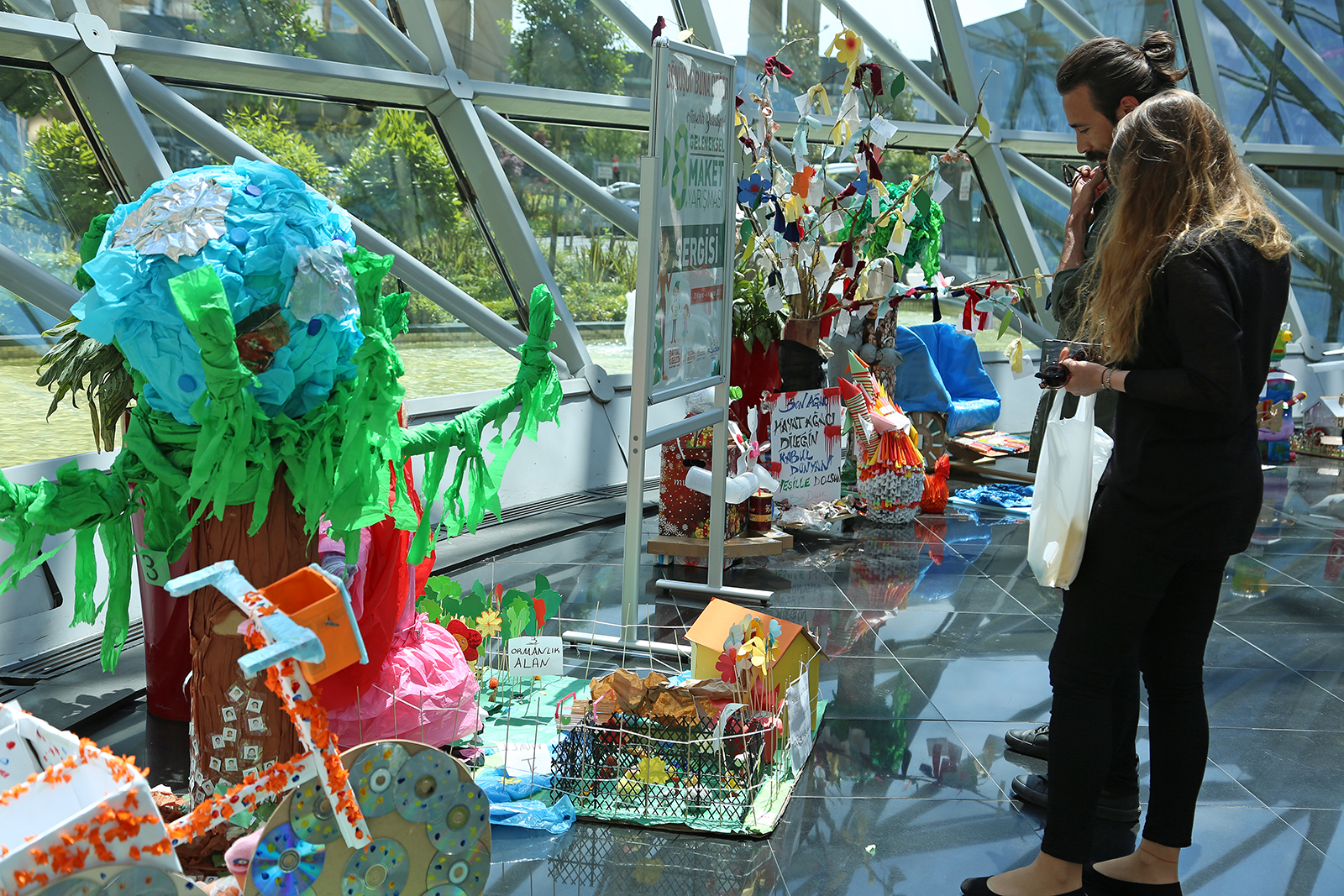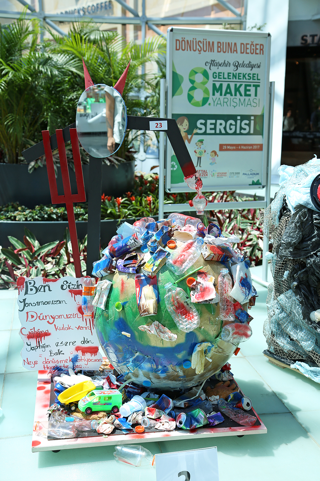 Ataşehir’deki ilkokul ve ortaokul öğrencilerinin, cam, kağıt, karton, plastik, kompozit ve metal gibi geri dönüşümlü malzemelerden hazırladığı maketler, Palladium AVM’de sergi alanında sergileniyor. Maket Sergisi 02 Haziran Cuma gününe kadar 10.00 ile 22.00 saatleri arasında gezilebilir.