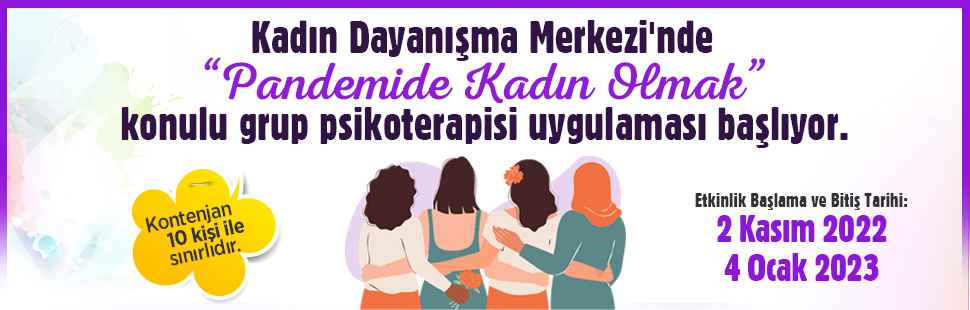 2 Kasım Çarşamba günü başlayacak “Pandemide Kadın Olmak” konulu grup psikoterapisi uygulamasına katılmak isteyenler 27 Ekim’e kadar Kadın Dayanışma Merkezi’nden kayıt yaptırabilirler.