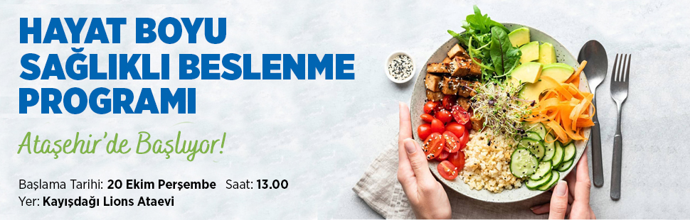 Kayışdağı Lions Ataevi’nde 20 Ekim Perşembe günü başlayacak, “Hayat Boyu Sağlıklı Beslenme” programı eğitimleri 6 modülden oluşuyor. Her bir modül 40 dakika anlatım, 20 dakika soru – cevap şeklinde gerçekleşecek.
