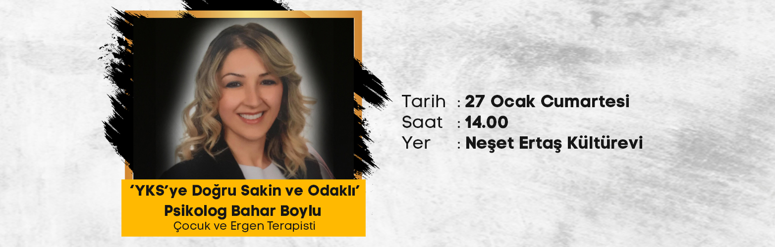 Sınav hazırlığı sürecinde olan gençler için düzenlenen “YKS’ye Doğru Sakin ve Odaklı” başlıklı söyleşide, Psikolog Bahar Boylu, gençlerin sınav öncesi psikolojik sağlamlıklarını nasıl güçlü tutabileceklerini paylaşacak. Bu değerli söyleşide, motivasyonun canlı tutulması, kişisel hedeflerin belirlenmesi, zorlukların üstesinden gelme stratejileri, kaygı yönetimi ve sağlıklı bir çalışma düzeni kurma konularına odaklanılacak. Bu söyleşi, gençlerin sınav sürecindeki duygusal ve psikolojik ihtiyaçlarına değinirken, onlara bu önemli dönemde nasıl destek olabileceklerini anlama fırsatı sunacak. Psikolog Bahar Boylu’nun deneyimleri ve uzmanlığı eşliğinde, gençlerin sınav kaygısıyla başa çıkma ve sınavlara daha sakin ve odaklanmış bir şekilde yaklaşma konularında değerli bilgiler edineceksiniz.
