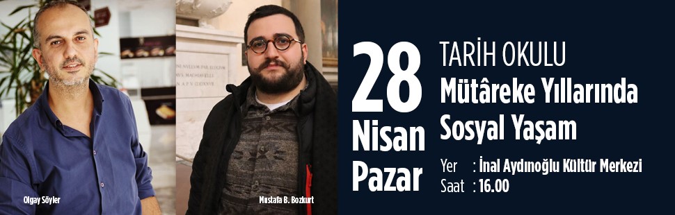 Tarih Okulu’nda bu ay Olgay Söyler yazar Mustafa B. Bozkurt ‘u ağırlıyor. Söyleşide beş yıl süren mütareke döneminin toplumun sosyal ve kültürel hayatına olan yansımalar tartışılacaktır. Şehirde işgalin ağırlığına rağmen yükselen eğlence kültürü, Rus Göçmenler ve Türk-İşgalci münasebetleri gibi konuların konuşulacağı söyleşiye tarihe meraklı herkesi bekliyoruz.