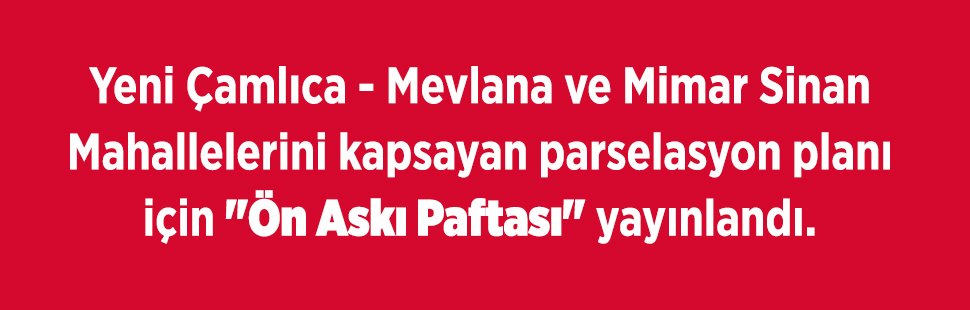 YENİ ÇAMLICA - MEVLANA- MİMAR SİNAN MAHALLELERİ "ÖN ASKI PAFTASI" YAYINLANDI