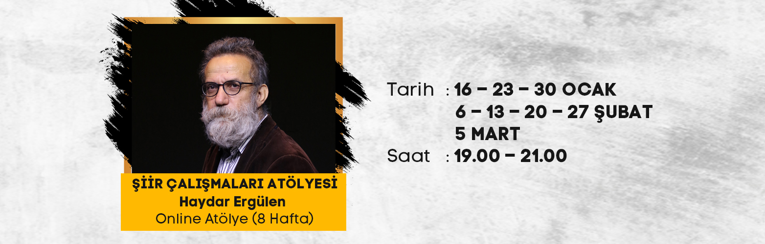 Bir şairin gözünden şiire bakmak, bir şairle şiir okumak, anlamak ve belki de bir şairle şiir yazma deneyimlemek ister misiniz? Öyleyse şair Haydar Ergülen ile gerçekleştireceğimiz şiir atölyesinde sizleri de bekliyoruz.