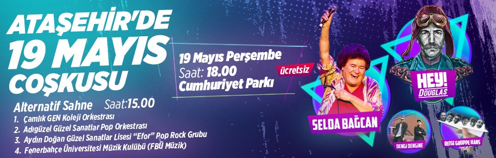 İstanbullu gençler 19 Mayıs’ta Ataşehir’de buluşacak. Cumhuriyet Parkı’nda yapılacak kutlamalarda amatör müzik gruplarının yanı sıra Alman rock müzik grubu Reise Gruppe Hans, sevilen topluluk Dengi Dengine ve muhteşem DJ performansıyla Hey Douglas sahne alacak. Finali Halk müziği ve Anadolu Rock'ın güçlü sesi Selda Bağcan yapacak.