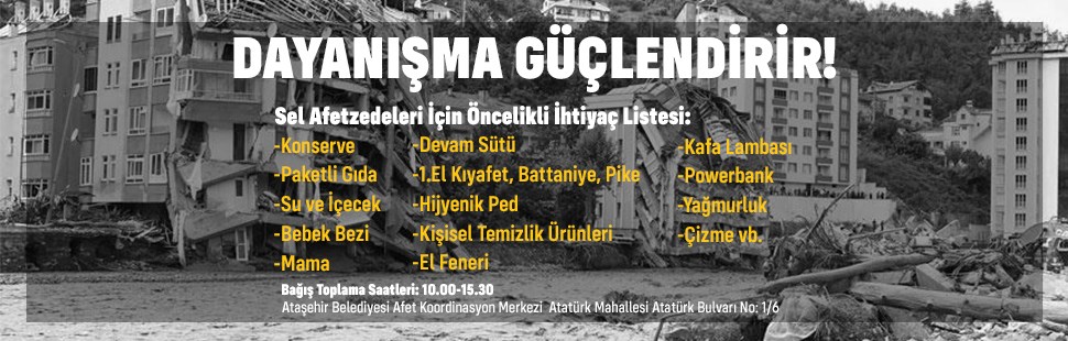 Batı Karadeniz’de meydana gelen sel felaketinden zarar gören afetzedeler için, Ataşehir Belediyesi tarafından 18-26 Ağustos tarihleri arasında yardım kampanyası başlatılıyor.