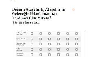 Ankete katılan Ataşehirliler hem geçmiş beş yıllık süreçte hangi hizmeti almakta zorlandıklarını belirtirken hem de gelecek beş yılda neler yapılması gerektiğini de belirleyecekler.