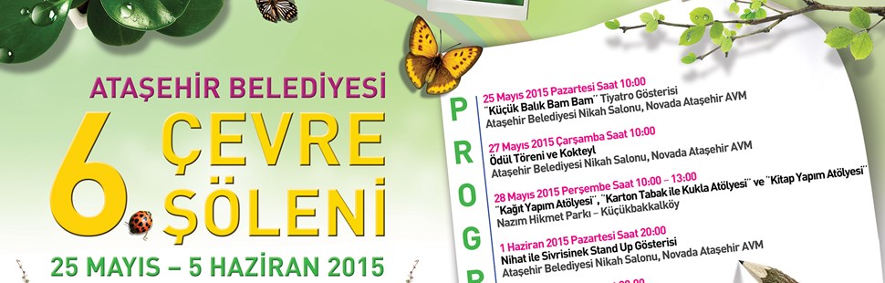 5 Hazirana kadar devam edecek Ataşehir Belediyesi 6. Çevre Şöleni’nin açılışı; 25 Mayıs Pazartesi günü saat 10:00’da Ataşehir Belediyesi Nikah Salonu’nda, “Küçük Balık Bam Bam” isimli Tiyatro gösterisi ile yapılacak.