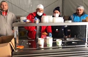 Hatay Antakya’da bir aşçı, bir yardımcı, kurulum ekibi ve temizlik çalışanlarıyla birlikte hizmet veren aşevinde sabahları sıcak çorba, akşamları da sıcak yemek dağıtımına başlandı. Aşevinde her gün yaklaşık 2 bin depremzedeye yemek çıkıyor.