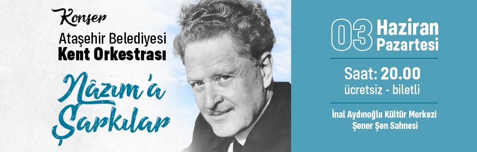 Ataşehir Belediyesi Kent Orkestrası, Türk Edebiyatı’nın önemli isimlerinden Nazım Hikmet'in anısına, 61. ölüm yıl dönümünde onun eserlerine yer verecekleri özel bir konser düzenliyor.