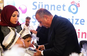 Ataşehir Belediyesi'nin geleneksel hale getirdiği sünnet şöleninde bu yıl ilçede yaşayan 500 çocuk hijyenik ve modern koşullarda ücretsiz olarak sünnet ettirilirken, çocuklara sünnet kıyafeti ve birer altın hediye edildi.