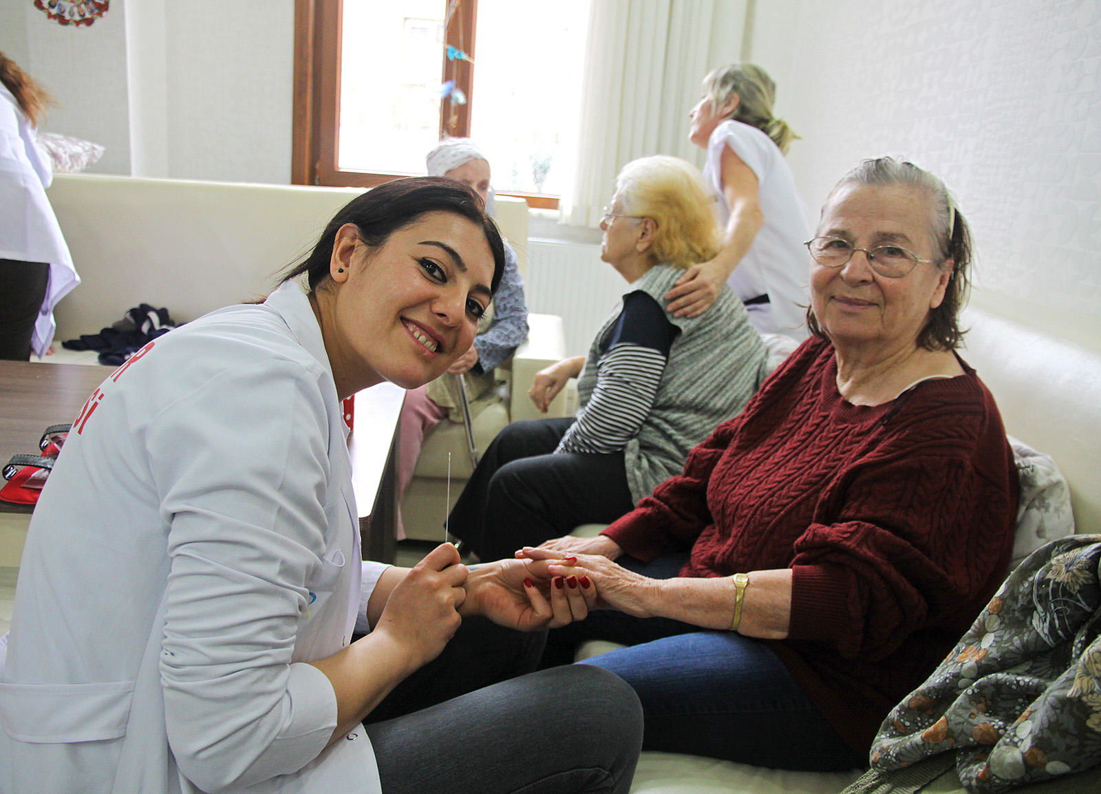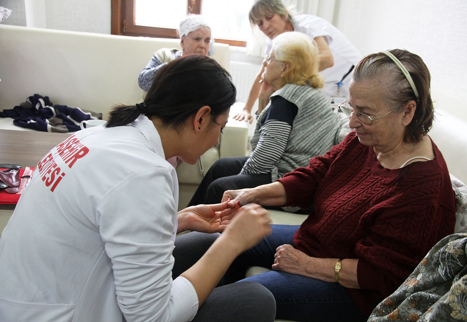 Kursiyerler, Nezih Yaşlı Bakım Evini ziyaret ederek huzurevi sakinlerine kişisel bakım hizmeti sundu.