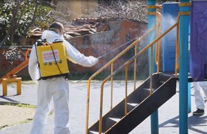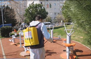 Veteriner İşleri Müdürlüğü tarafından gerçekleştirilen ilaçlama çalışmalarında vatandaşların kullandığı tüm alanlar özel kıyafetli personel tarafından püskürtme yöntemiyle detaylı bir şekilde ilaçlanıyor.