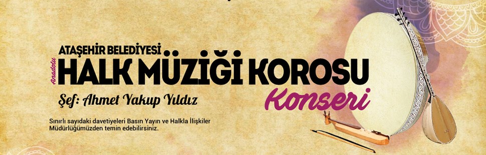 Ataşehir Belediyesi Türk Halk Müziği Korosu, Şef Ahmet Yakup Yıldız yönetiminde Ataşehirli sanatseverlerle buluşacak.