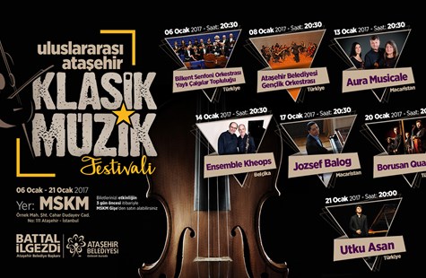 Ataşehir Belediyesi tarafından ilk kez düzenlenen Uluslararası Klasik Müzik Festivali, 6 Ocak Cuma günü Bilkent Senfoni Orkestrası Yaylı Çalgılar Topluluğu Açılış Konseri İle başlıyor. Konser, Ataşehir Belediyesi Mustafa Saffet Kültür Merkezi’nde saat 20.30’da başlayacak.