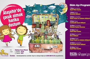 Ekim ayında Düştepe Oyun Müzesi’nde ise 6 farklı atölye Ataşehirli çocukları bekliyor. “Ebru Atölyesi”, “Seramik Atölyesi” “Kaşif - Müze Oyunu”, “Masal Yazım ve Anlatım Atölyesi”, “Cambazlık Oyun Atölyesi” ve “Müzede Hazine Macerası” isimli atölyeler seanslar halinde Ataşehirli çocukları masal ve oyun dünyasına davet ediyor.