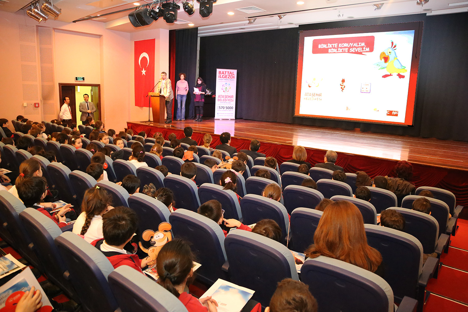 Ataşehir Bilfen İlköğretim Okulu’nda düzenlenen projenin ilk eğitim seminerine; Ataşehir Belediye Başkan Yardımcısı Namık Sürmen, İstanbul Veteriner Hekimler Odası Başkanı Prof. Dr. Murat Arslan, Ataşehir Kent Konseyi Genel Sekreteri Turan Dolu, Hayvan Hakları Federasyonu (HAYTAP) Başkanı Ahmet Şenpolat, Çevre ve Sokak Hayvanları Derneği Ataşehir Temsilciliği adına Sanem Yıldırım ve Ataşehir Belediyesi Veteriner İşleri Müdürü Necati Bozkurt ile Basın-Yayın ve Halkla İlişkiler Müdürü Zeynep Çetinkaya da çocuklarla birlikte katıldı.