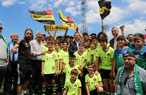 Esatpaşa Spor Tesisi’ni gezen başkanlar sporcu çocuklarla tanışıp, onlara başarılar dilediler. İmamoğlu ve İlgezdi daha sonra U12 yaş grubu futbol karşılaşmasını izledi.