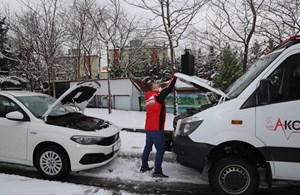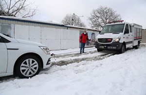 Belediye’nin sağlık ekipleri de, kar yağışı ve buzlanma nedeniyle evlerinden sağlık merkezlerine gidemeyen hasta vatandaşların nakil işlemlerini gerçekleştirirken yolda kalan araçlara da müdahale ederek yol yardımı desteği sağladı.