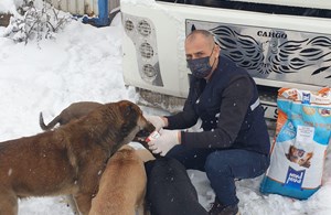 Veteriner İşleri Müdürlüğü tarafından ise sokak hayvanlarının yoğun kış şartlarından etkilenmemesi için mama dağıtımı yapıldı.