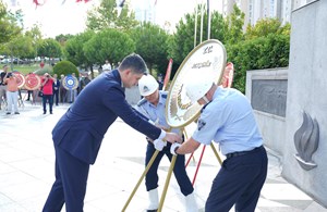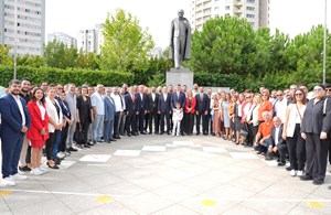 Atatürk Anıtı’na çelenk sunumunun ardından saygı duruşunda bulunuldu ve İstiklal Marşı okundu.