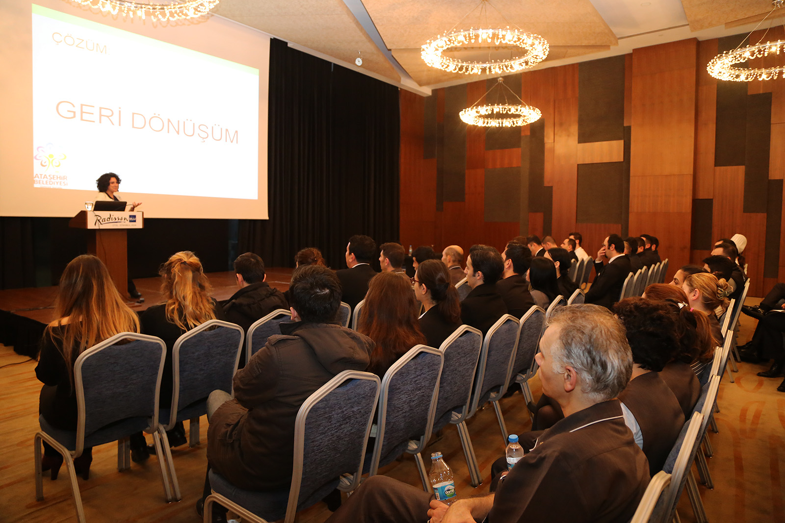 Ataşehir Belediyesi, ÇEVKO ve Şişecam Cam Ambalaj işbirliğiyle Ataşehir'de otel personeline yönelik atık camların geri dönüşümü ile ilgili eğitimler veriliyor.