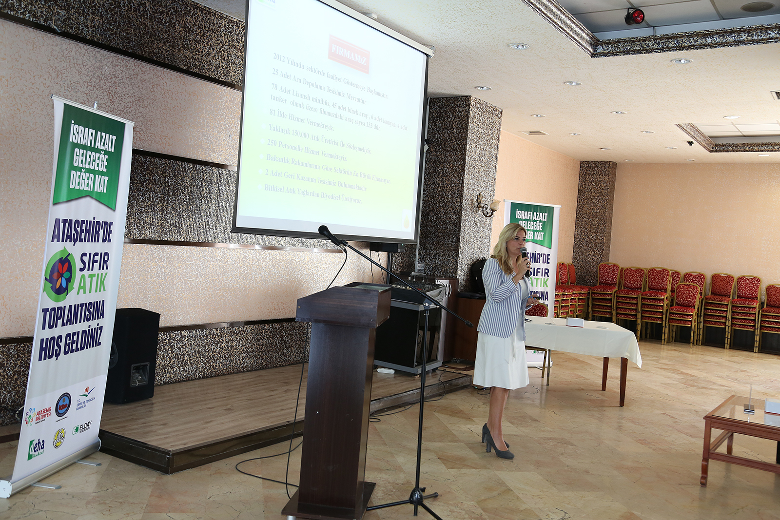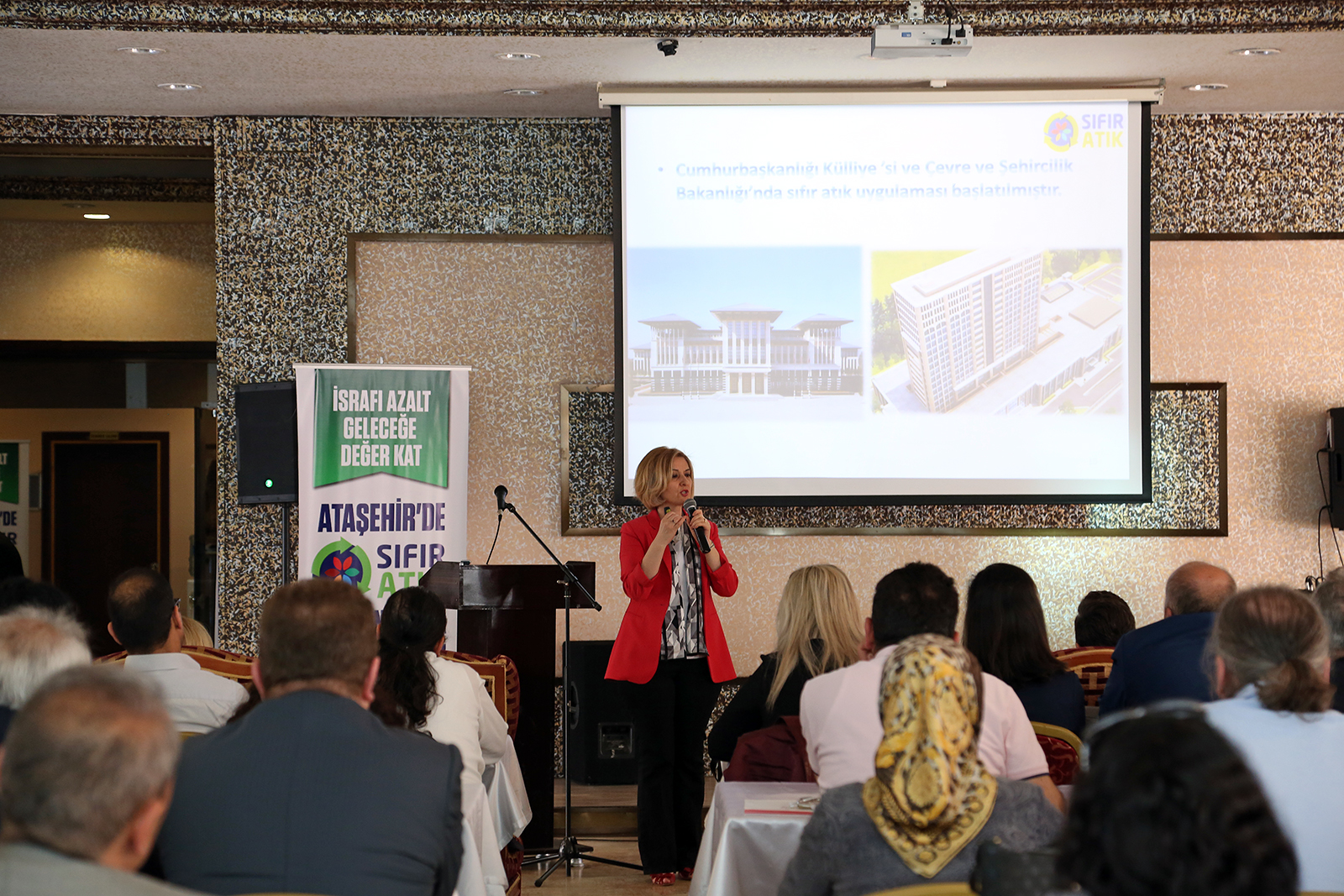 Çevre ve Şehircilik Bakanlığı Sıfır Atık Şube Müdürü Hülya Çakır yaptığı konuşmada “Gelişen bir ülkeyiz. Son 20 yıla baktığımızda atık miktarımız iki katına ulaştı. Ham madde miktarı artı, enerji miktarı ise her geçen gün artıyor. Beşikten mezara at kültüründen artık kurtulmamız gerekiyor. Çünkü bir ürün üretiliyor, bunu alıyoruz, kullanıyoruz ve unu atıyoruz. Artık bunu bırakmamız gerekiyor. Döngüsel ekonomiye geçmemiz gerekiyor. Atıklarımız atmadan kaynağında ayrı toplayarak, geri kazanıma kazandırmamız gerekli. Bu noktada bütün dünya bir arayış içindedir. Çevreci bir yaşam modeli aranıyor. Bizde bu noktada sıfır atığı görüyoruz. Sıfır atık bir hedef, bir strateji, bir yaklaşımdır. Kaynakların verimli kullanılmasını, oluşan atığın azaltılmasını amaçlayan bir yaklaşımdır” dedi.