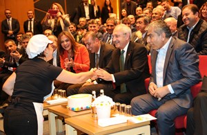 Merkezde Ataşehir Belediyesi Gençlik Orkestrası’nın sunduğu müzik dinletisini konuklarla birlikte dinleyen Kılıçdaroğlu’na, Ataşehir Belediyesi’nin mesleki eğitimi kurslarından pastacılık derslerine katılan Elif Çolak, sürpriz yaparak kendi yaptığı pastayı ikram etti.