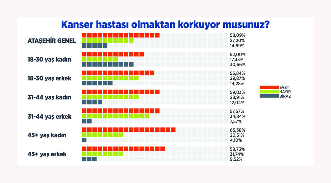 Ataşehir Belediyesi, kanser anketi yaptı; 423 bin nüfuslu Ataşehir’de ailesinde kanser vakası görülenlerin oranı yüzde 23.49 oldu.