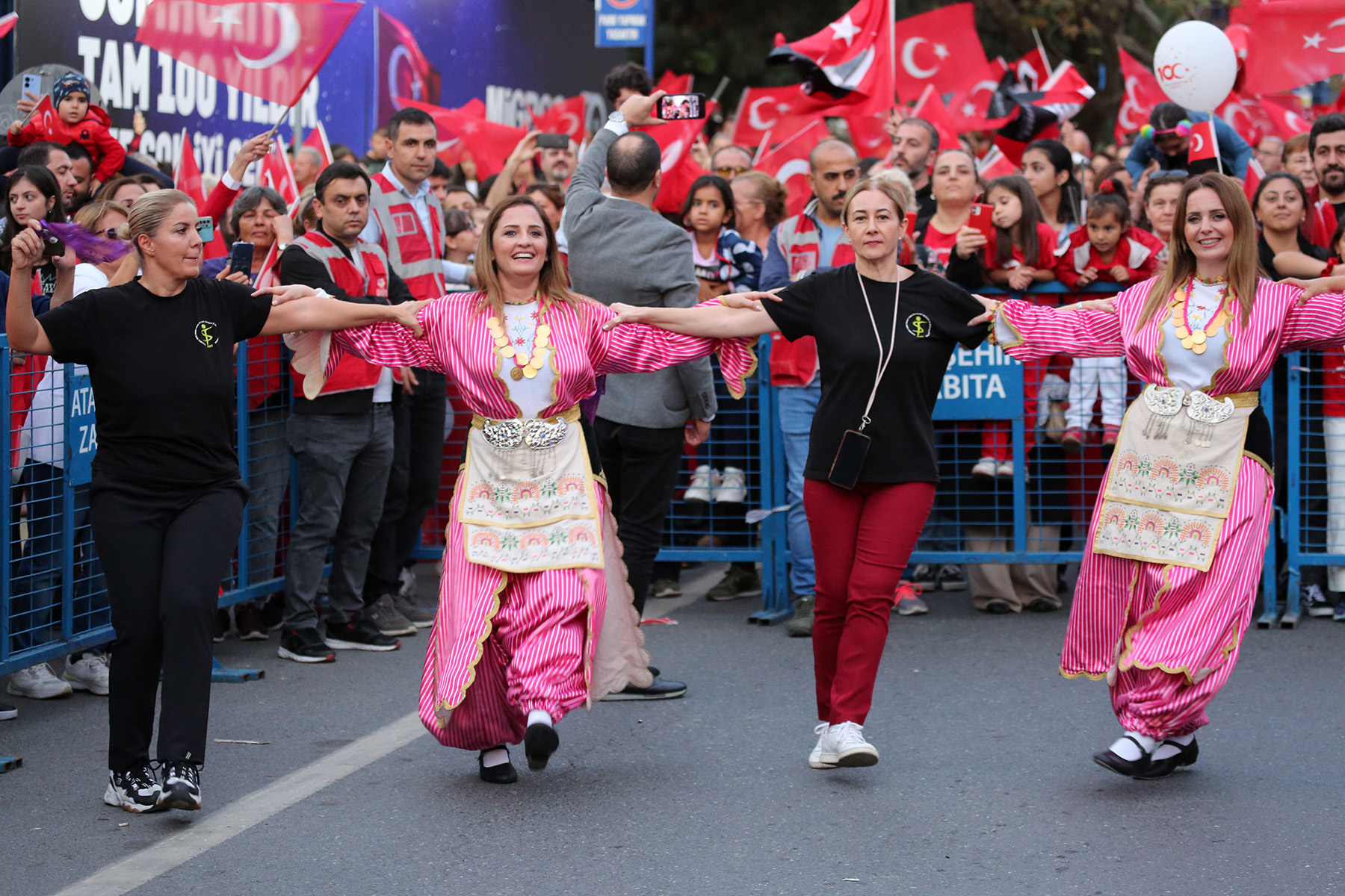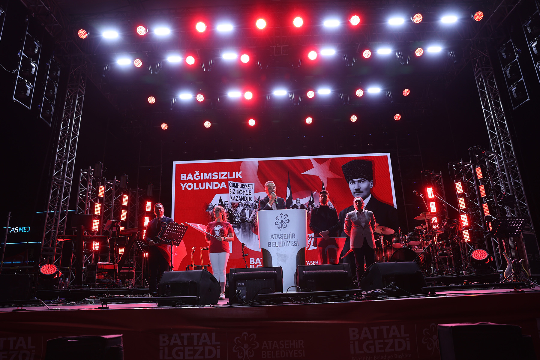 Yürüyüşün ardından Ataşehir Belediye Başkanı Battal İlgezdi, yurttaşları selamlayarak bir konuşma gerçekleştirdi. Tüm ulusun Cumhuriyet Bayramı’nı kutlayan Başkan İlgezdi, “Bugün burada sizlerle birlikte Cumhuriyetimizin 100. yılını kutluyor olmanın onur ve mutluluğunu yaşıyoruz. Cumhuriyet, milletimize verilmiş en büyük miras ve vazgeçilmez bir değerdir. İşte bu değer, bizlerde milli bir devletin onurlu evlatları olarak vücut bulmuştur. Cumhuriyet, bağımsızlığından ödün vermeyen, dayatmalara boyun eğmeyen, egemenliğine sahip çıkan yiğit Türk ulusunun umudu olarak bizlere emanet edilmiştir. Gözü yaşlı anaların, bir kuru ekmekle cephede savaşanların, bağımsızlık uğruna can verenlerin mirası olan cumhuriyet benim, cumhuriyet bizim, cumhuriyet hepimizindir. Bugün bu coşkuya katılan cumhuriyetimizin en değerli evlatları olan sizlerin Cumhuriyet Bayramı’nı bir kez daha kutluyorum. Başta Gazi Mustafa Kemal Atatürk ve silah arkadaşları olmak üzere cumhuriyetimizin tüm kurucularını saygı ve sevgiyle anıyorum” dedi.