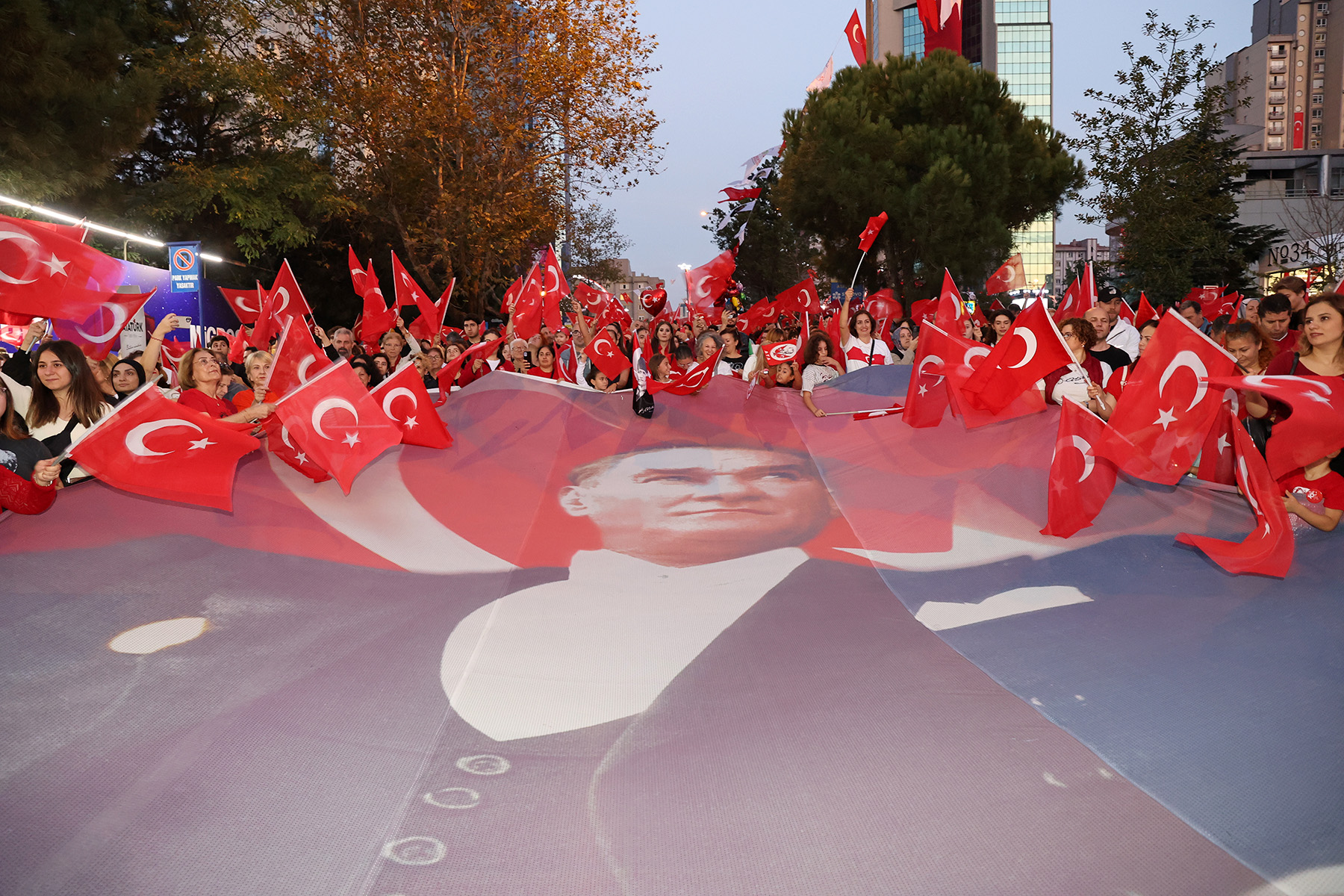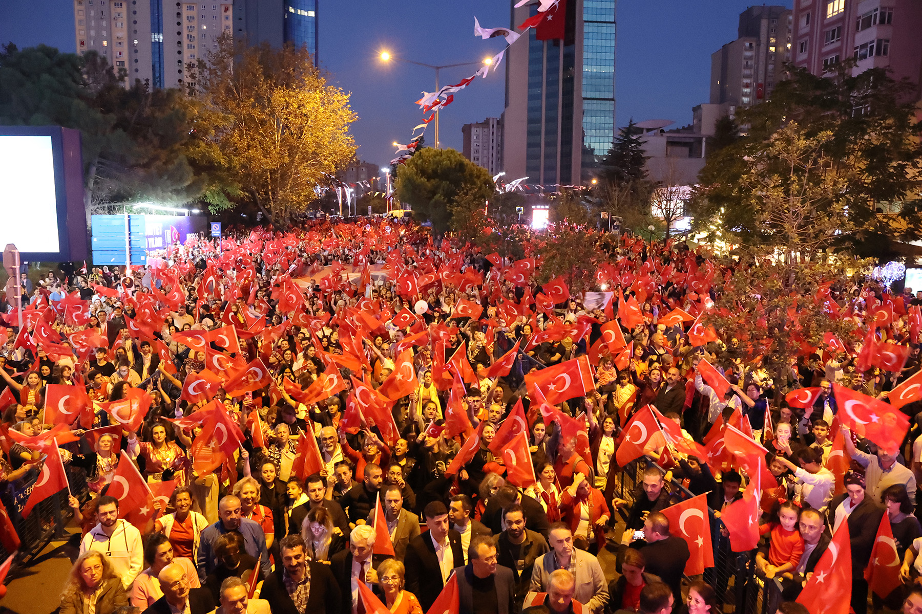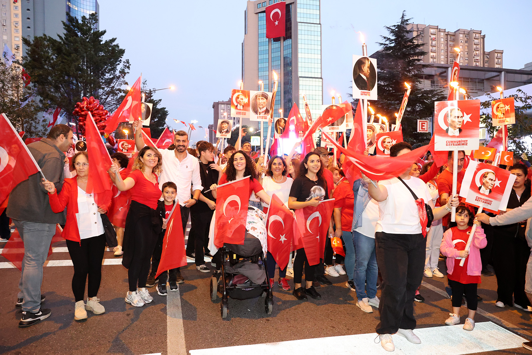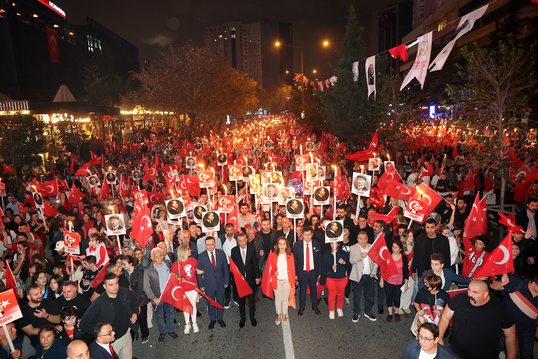 Cumhuriyetin 100. yıl dönümü Ataşehir’de on binlerin katıldığı fener alayı yürüyüşü ve Sertab Erener konseriyle kutlandı.