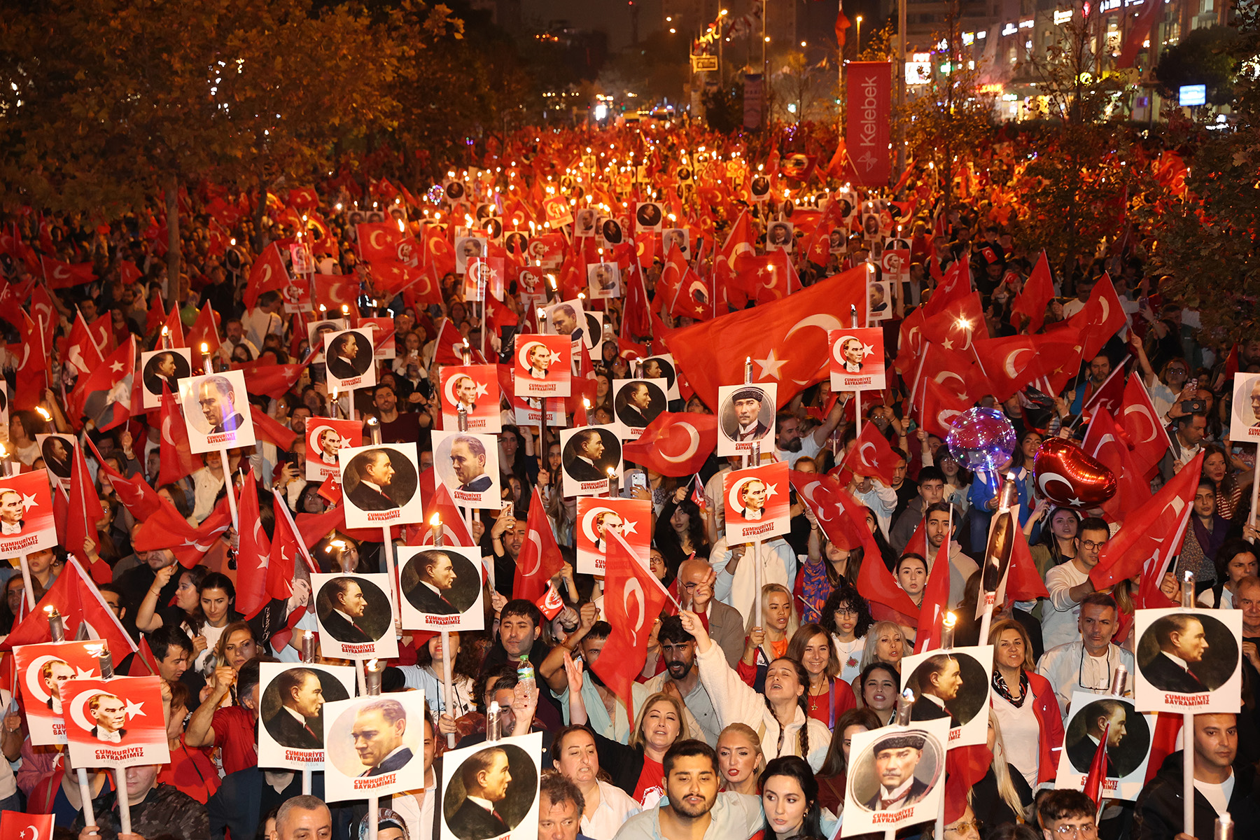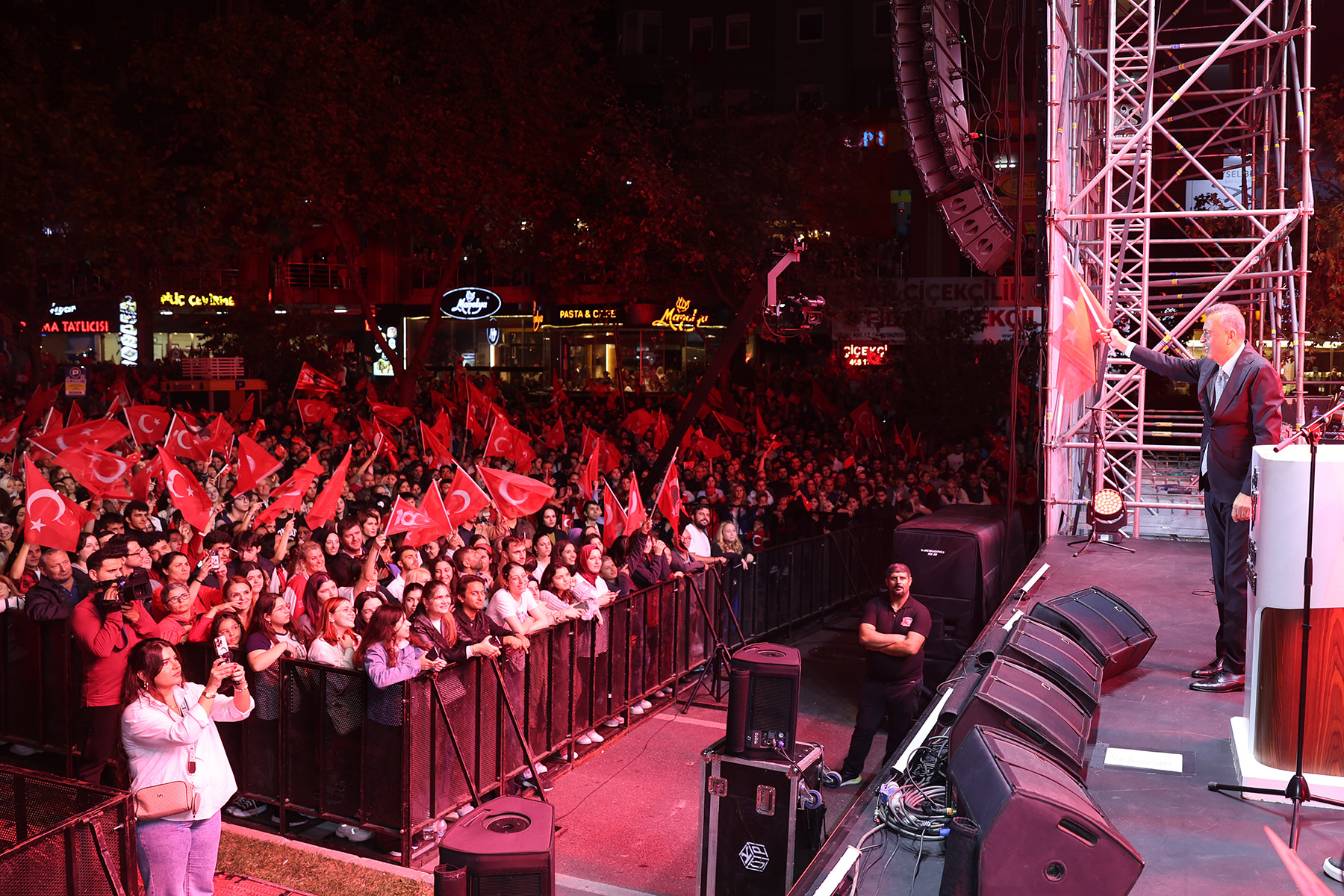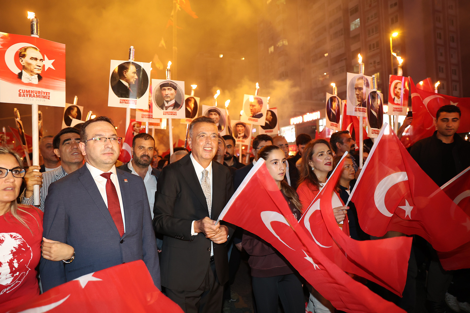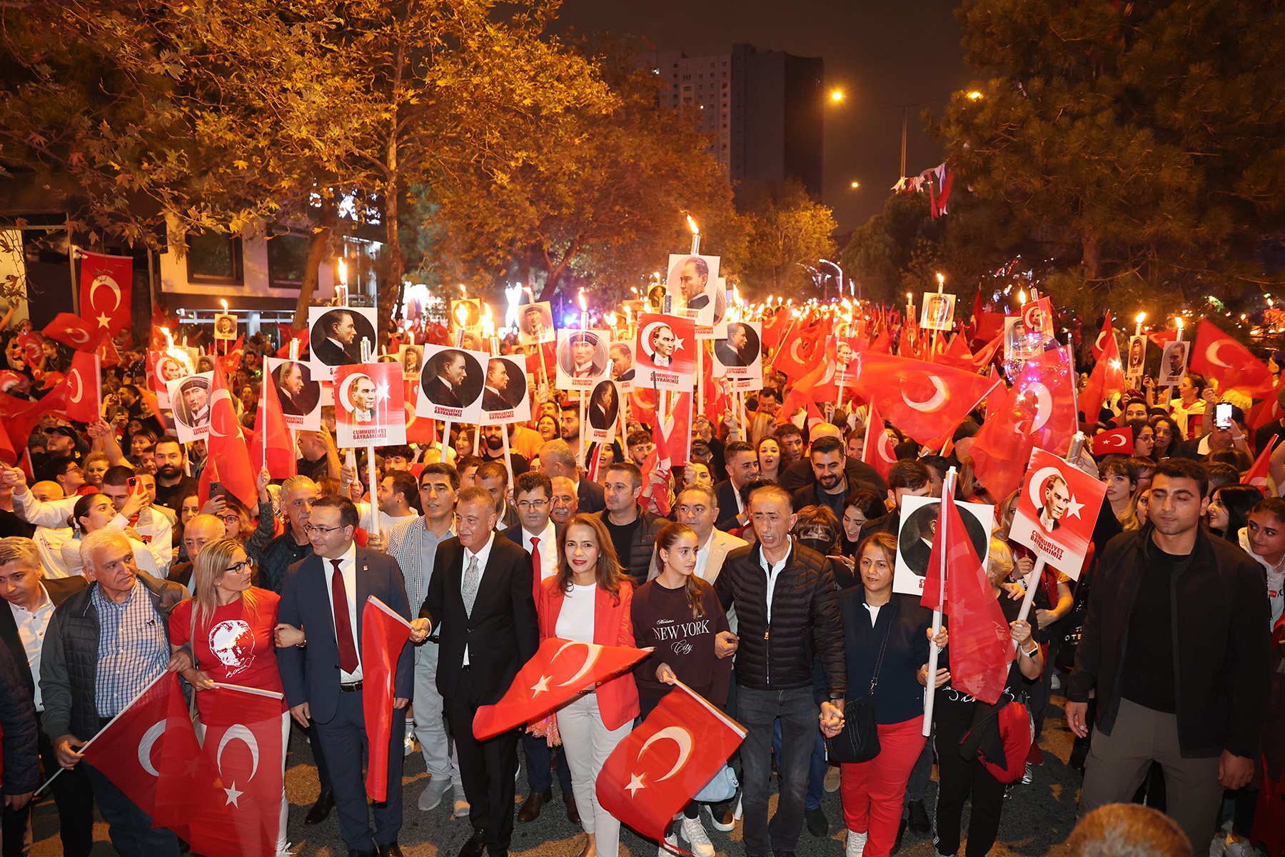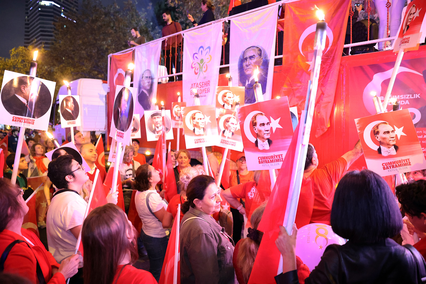 Cumhuriyetin 100. yıl dönümü Ataşehir’de on binlerin katıldığı fener alayı yürüyüşü ve Sertab Erener konseriyle kutlandı.