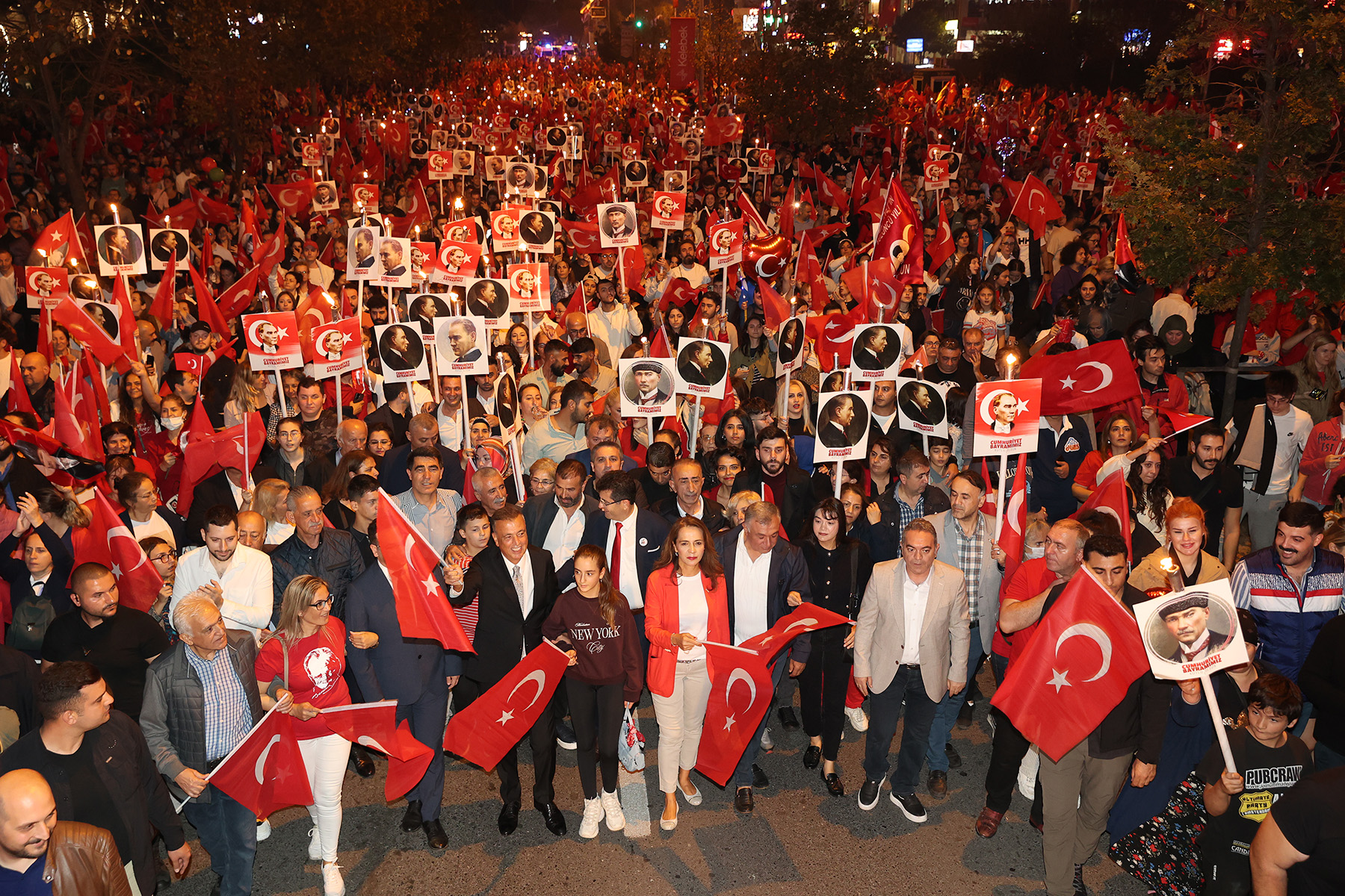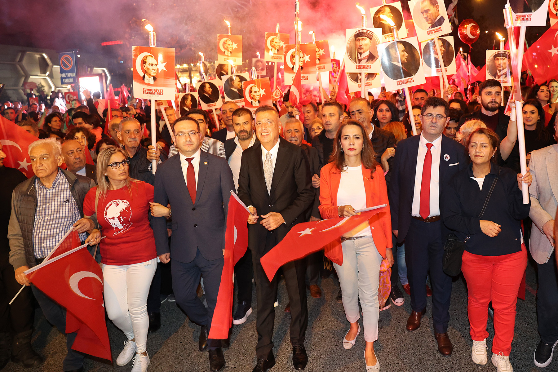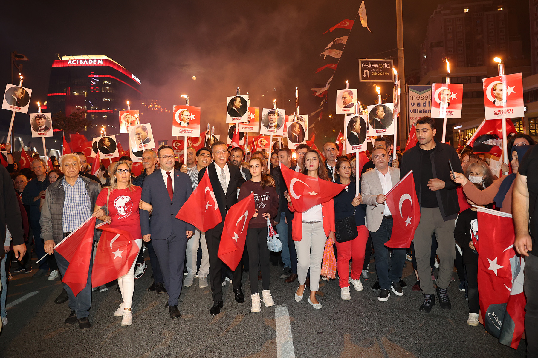 7’den 70’e her yaştan cumhuriyet sevdalılarının ellerinde Türk bayraklarıyla marşlar söyleyerek gerçekleştirdiği coşkulu yürüyüşe, her yıl olduğu gibi bu yıl da Ataşehir Belediye Başkanı Battal İlgezdi öncülük etti. Yürüyüş boyunca, cumhuriyetin 100. yıl dönümüne özel olarak hazırlanan; bando, ışık, mapping, hologram ve projeksiyon gösterisi yapıldı. “Cumhuriyet Hepimizin” ve “Yaşasın Cumhuriyet” sloganlarıyla Atatürk Mahallesi Migros önünde buluşan kalabalık, Ataşehir Bulvarı boyunca bayram havası yaşatan coşku dolu bir yürüyüşle konserin yapılacağı alana geldiler. Yürüyüşe; CHP Parti Meclisi Üyesi ve İstanbul Milletvekili Gamze Akkuş İlgezdi, CHP Ataşehir İlçe Başkanı Celal Yalçın, Ataşehir Belediye Başkan Yardımcıları ile birim müdürleri, muhtarlar, STK temsilcileri ve on binlerce yurttaş katıldı.