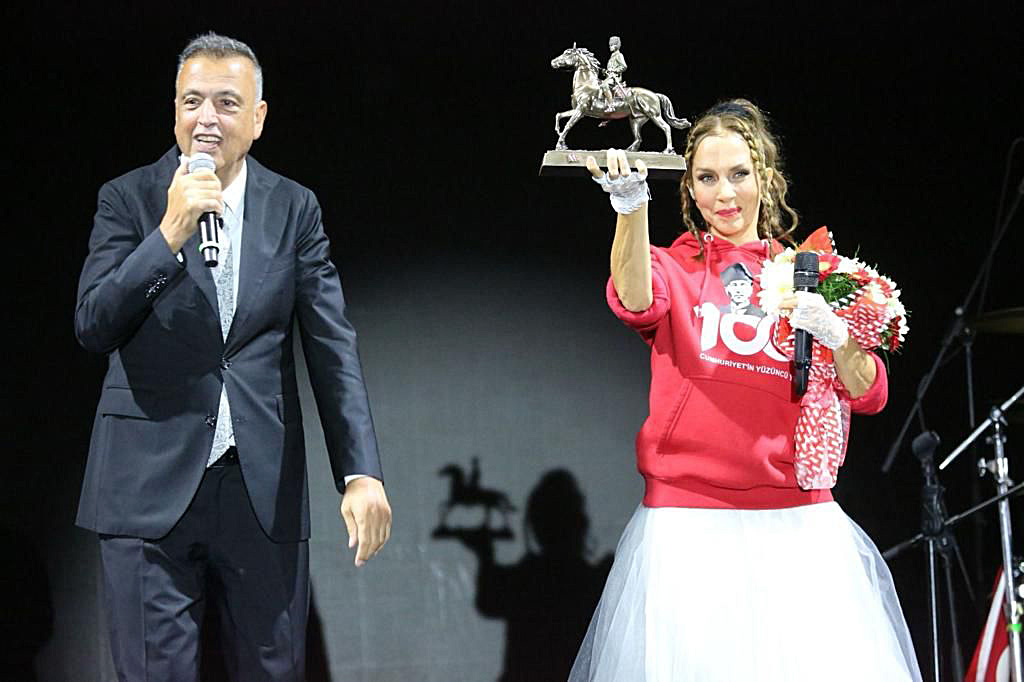 Konuşmanın ardından sahne alan Sertab Erener, eski ve yeni şarkılarıyla alanı dolduran herkese cumhuriyet sevincini doyasıya yaşatarak bayram coşkusunu zirveye taşıdı. Başkan Battal İlgezdi, günün anısına ve Ataşehirliler adına Sertab Erener’e çiçek ve Atatürk heykeli hediye etti.