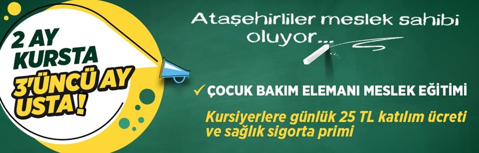 Ataşehir Belediyesi ile Ataşehir Adıgüzel Meslek Yüksekokulu’nun ortaklaşa düzenlediği ve İŞKUR’un desteğiyle gerçekleşen Çocuk Bakım Elemanı Mesleki Eğitim Kurslarına başvurular alınmaya başlandı.