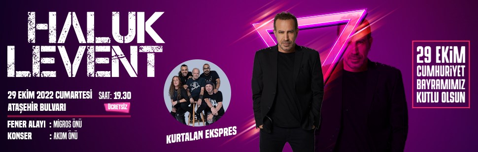 Fener alayı yürüyüşünün ardından Ataşehir’deki Cumhuriyet coşkusu düzenlenecek Haluk Levent konseriyle zirveye çıkacak. 29 Ekim Cumartesi günü Atatürk Mahallesi Ataşehir Bulvarı’nda bulunan Ataşehir Belediyesi Afet Koordinasyon Merkezi (AKOM) önünde sanatçı Haluk Levent en güzel şarkılarını Cumhuriyet için söyleyecek.