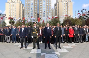 Cumhuriyet Meydanı’nda yapılan törende Ataşehir Kaymakamı İsmail Hakkı Ertaş, Garnizon Komutan Vekili İkmal Albay Volkan Aydın ve Ataşehir Belediye Başkanı Battal İlgezdi, Atatürk Anıtı'na çelenk sundular.